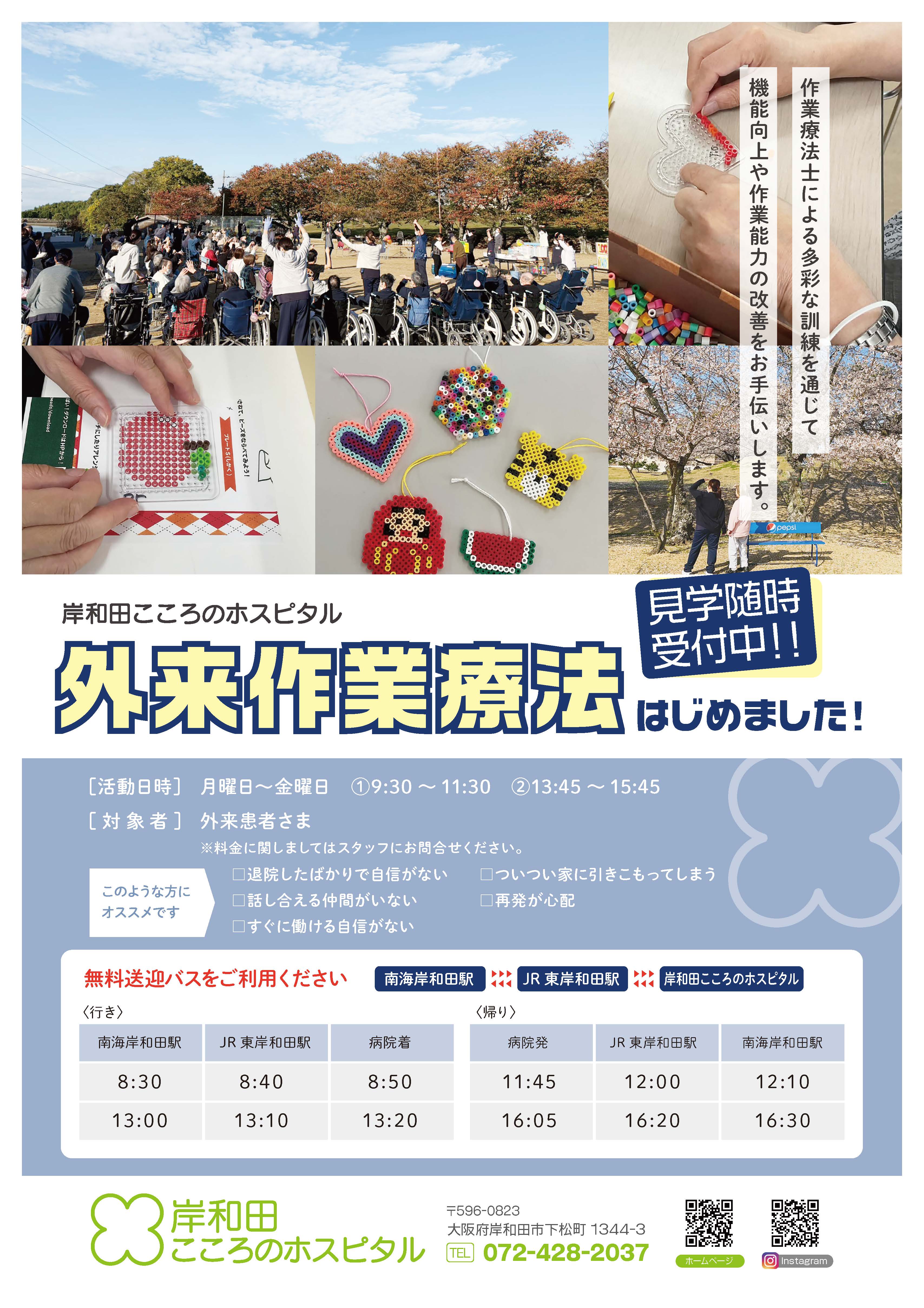 | 13:45~15:45 | 個人OT・コーラス | カラオケ・個人OT | 制作・個人OT | 創作・個人OT | 個人OT・お菓子 | 脳トレ・ビーズ | 個人OT・クラフト |
